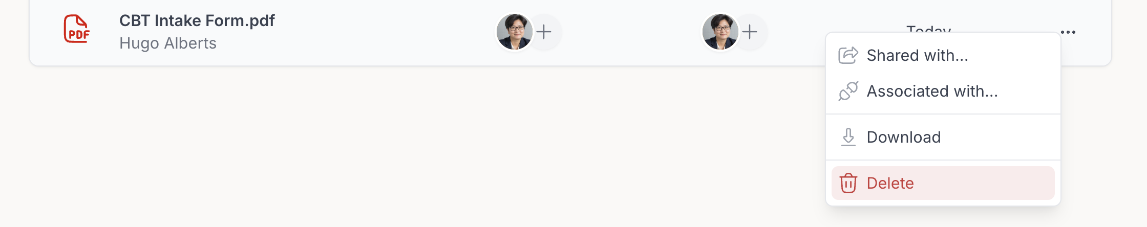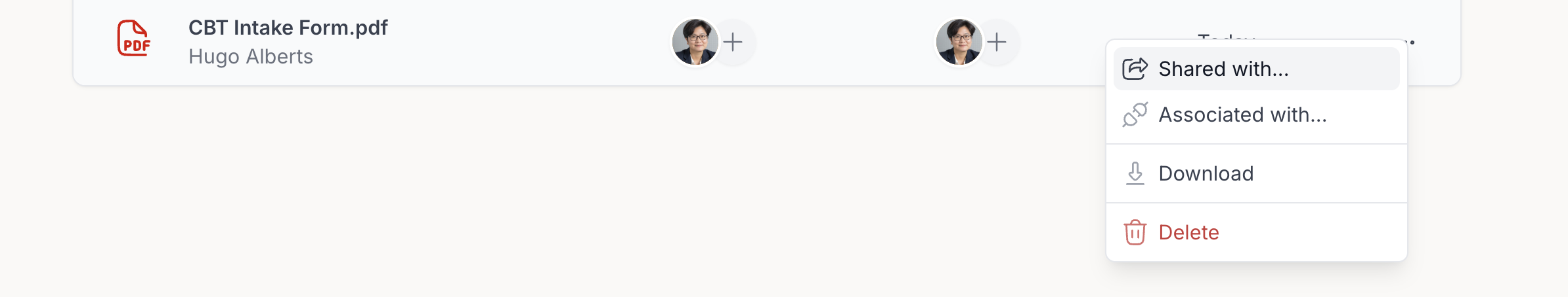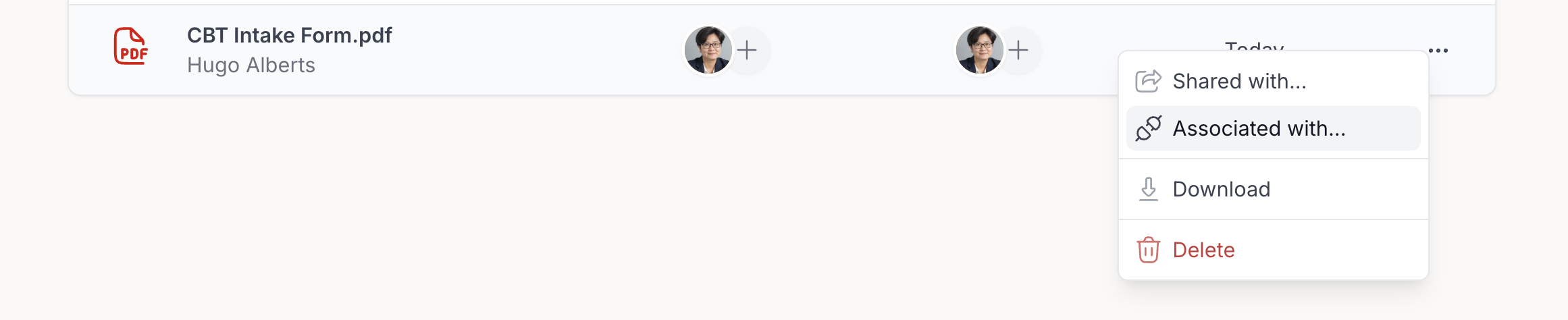 This shows the client or group the resource is associated with. Context means: Who this resource belongs to or is linked to inside your workspace. You can also click the + icon in this column to manage associations.
