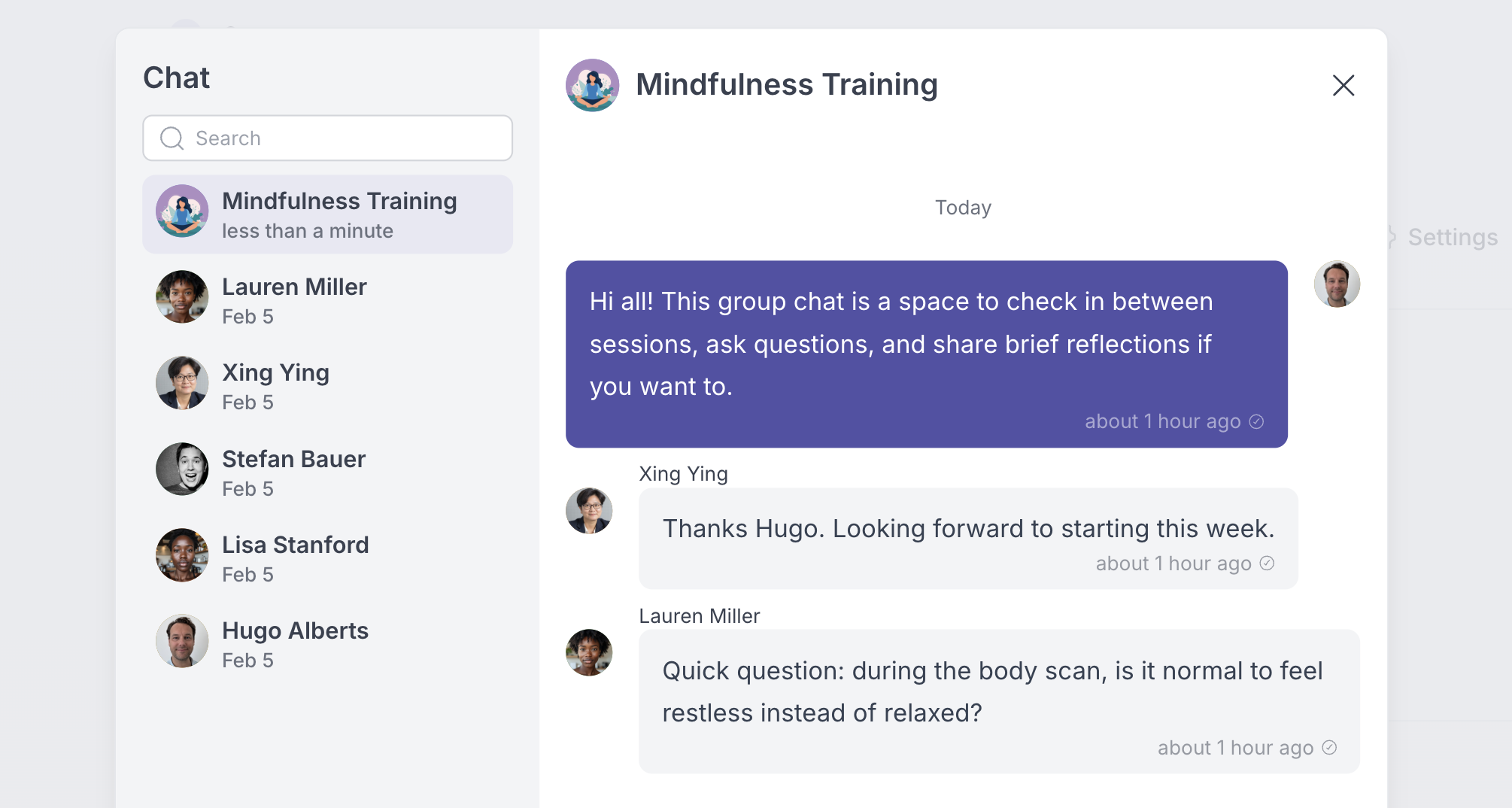 Once Group Chat is enabled, the chat becomes available in the client app. Clients can message you and other members of the group in a shared conversation. Clients can only see and participate in chats for groups they are assigned to.